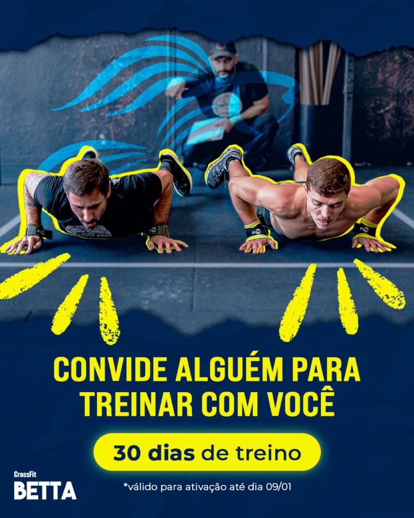 30 dias de treino com a gente, para experimentar treinar com a nossa comunidade. A pessoa só precisa preencher nossa inscrição clicando aqui e entraremos em contato para ativar a experiência.